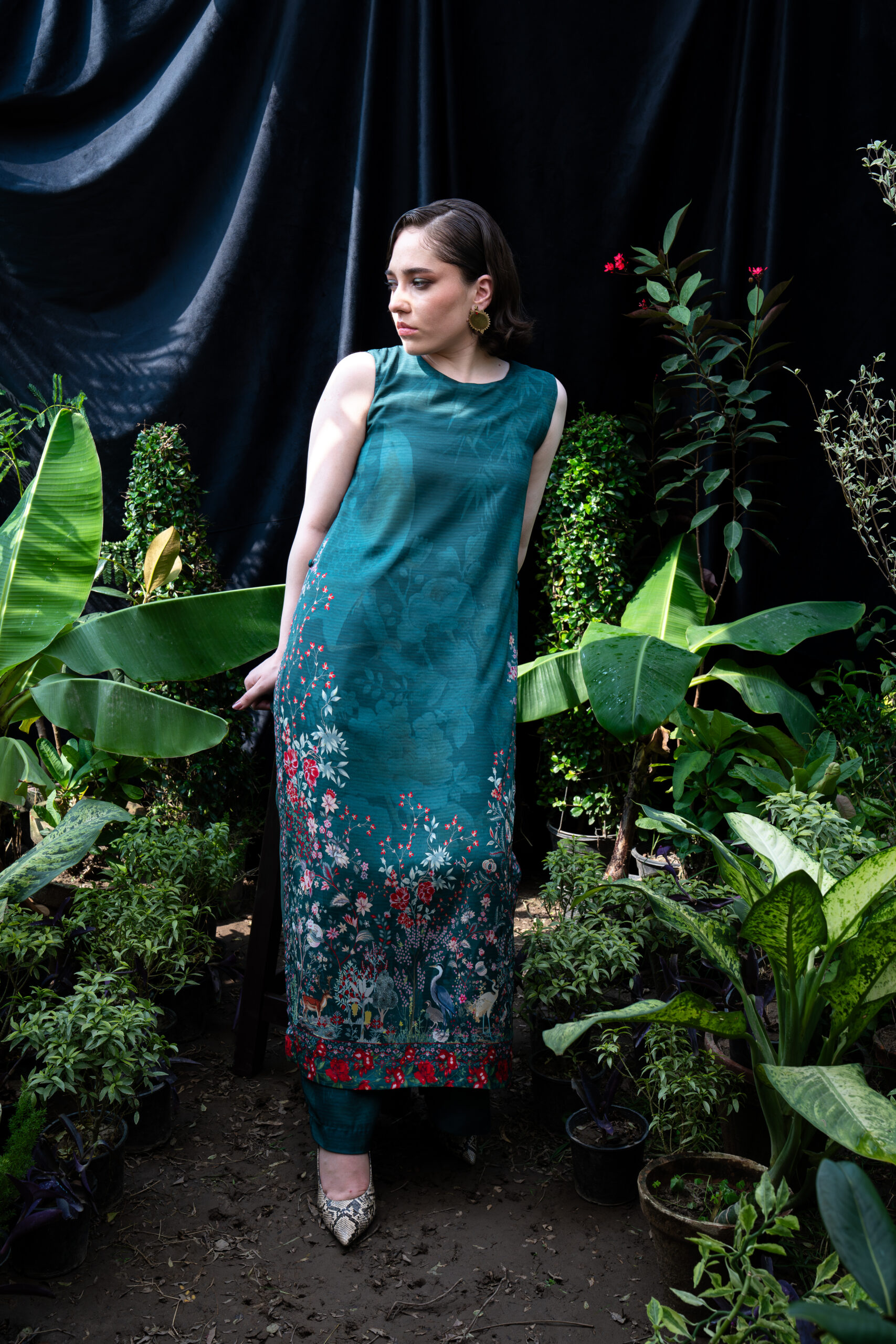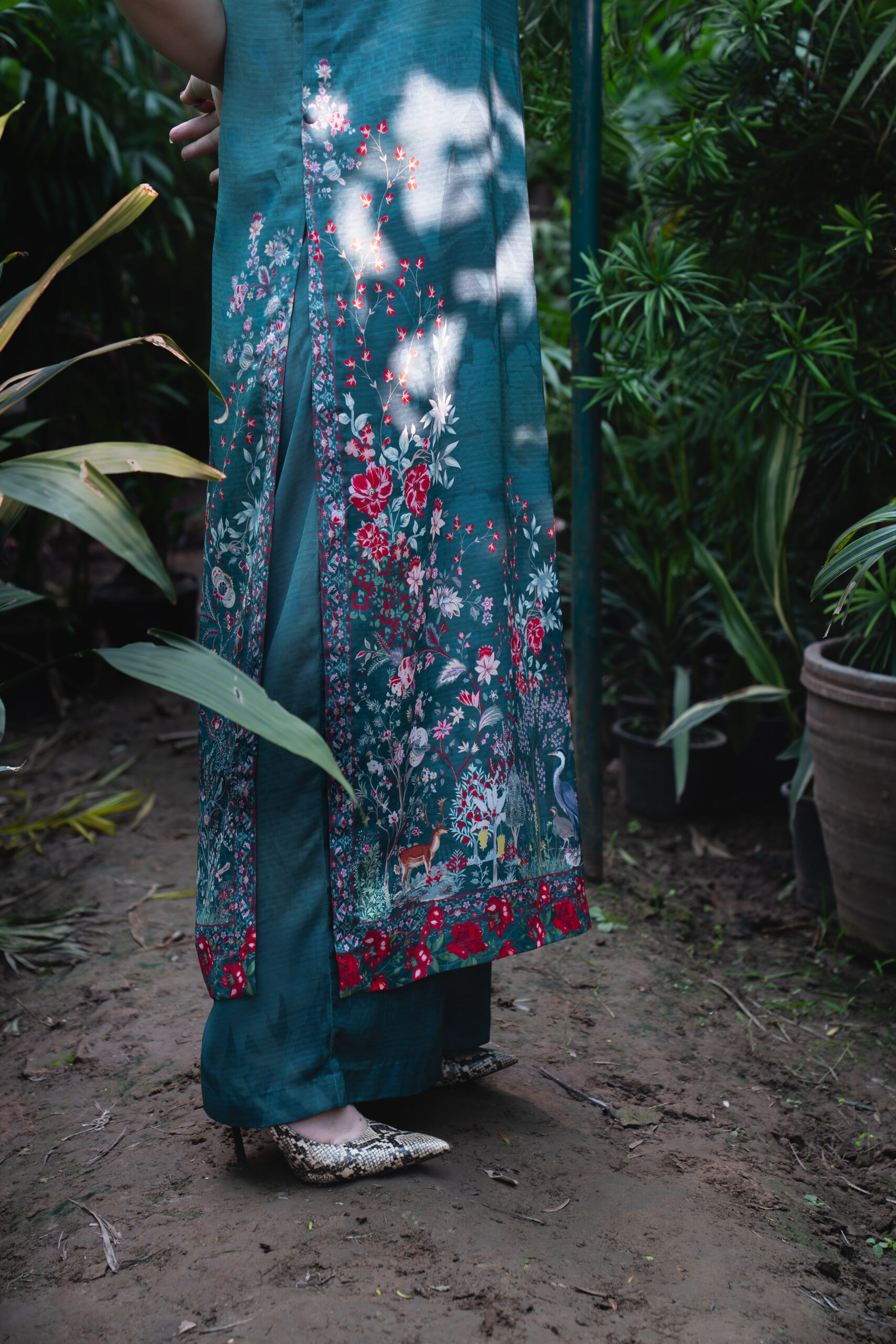 + Free ShippingEmbrace the beauty of nature with our stunning Floral and Bird printed outfit. This exquisite ensemble features a harmonious blend of vibrant floral patterns and elegant bird motifs, capturing the essence of a serene garden in full bloom. The intricate design showcases delicate blossoms in rich colors, beautifully complemented by gracefully perched cranes that add a whimsical touch.