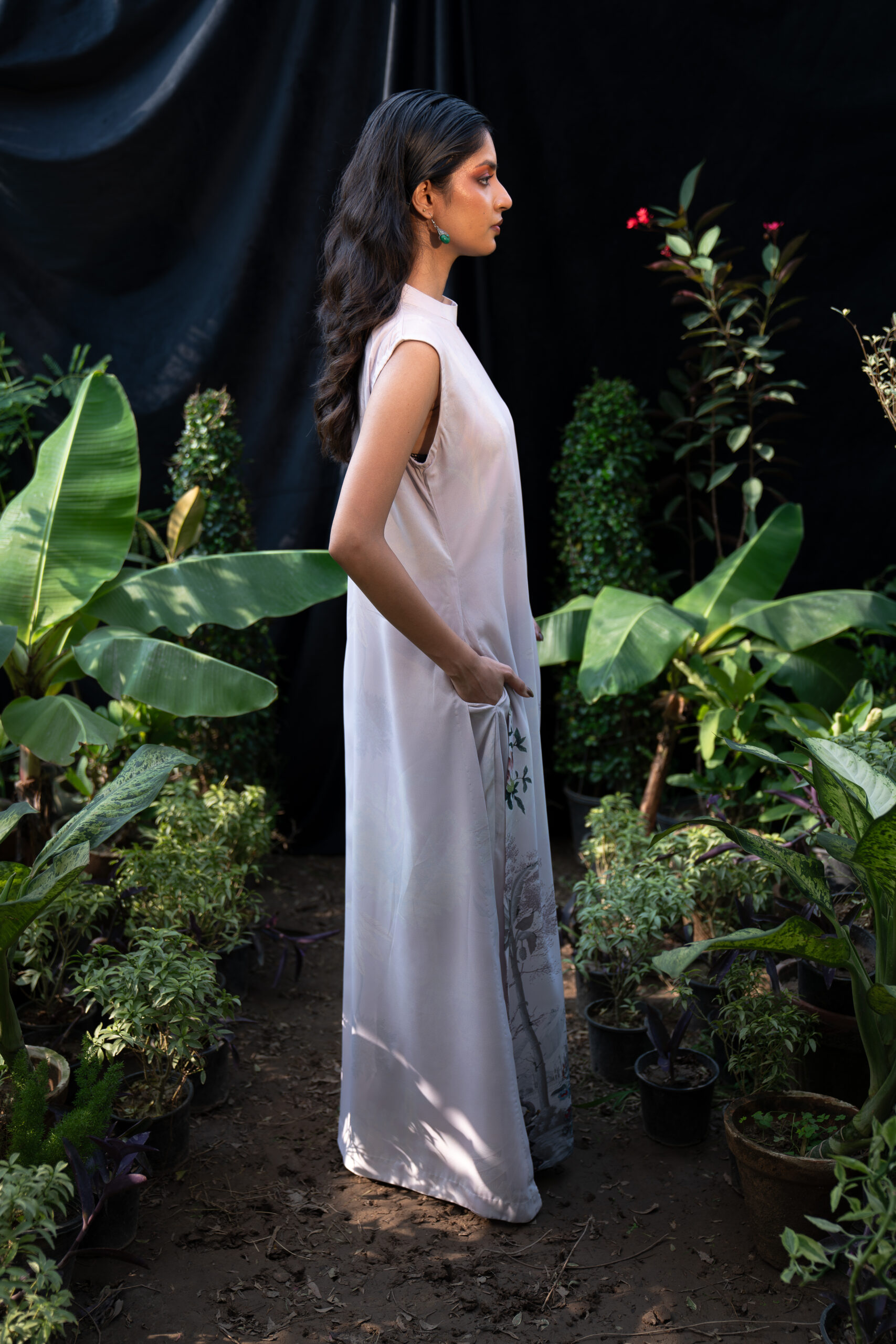 This sophisticated design features a beautiful Mughal story with a blend of flora and fauna. The tailored cut and premium fabric create a flattering silhouette that moves with you!